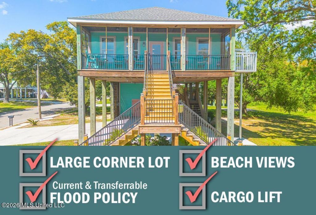 100 Pitcher Point is a Beach View Treehouse! This gorgeous property is flanked by beautiful, mature oak trees on a large corner lot with a fabulous double staircase and perfect screened porch! It stands tall with a prominent spot in this neighborhood offering manicured landscaping and plenty of space between you and your neighbors. This 3 bedroom, 2 bath beach home offers a spacious and functional layout with gorgeous hardwood floors, hurricane rated windows, with custom blinds, and plenty of storage throughout. The kitchen is designed to impress with a natural gas stove, custom seashell tile, plenty of cabinetry and custom pantry with pullout shelving. Relax on the expansive screened porch which is dressed with ideal aluminum railings for coastal areas, full span carpet to help keep those pesky bugs to a minimum and an easy access cargo lift so you don't have to carry all those heavy items up the stairs. The porch furniture will remain for the next Buyer to enjoy!Downstairs storage has been added for convenience along with multiple water spigots, exterior lighting and 2 sitting areas to enjoy the outdoors. This single owner home has been well cared for and is in fantastic condition, ready for you to move right in and enjoy everything our Gulf Coast has to offer.